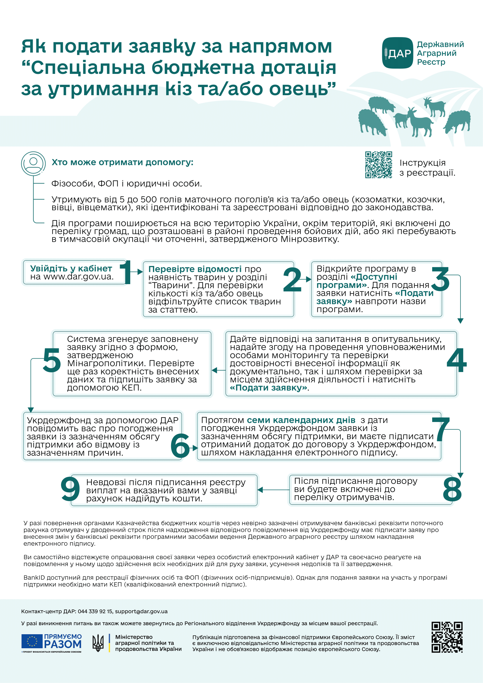 Як подати заявку за напрямом “Спеціальна бюджетна дотація за утримання кіз та/або овець”